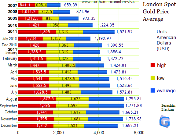 (price of gold up 43.93% or $527.70 (August 9, 2010 - August 9, 2011).